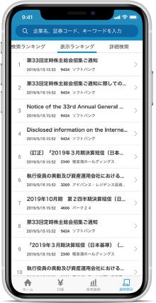 PCでわざわざ適時開示情報のページや企業のIRページにアクセスしなくても、適時開示が公開され次第、アプリを開けばすぐにチェックが可能です。
